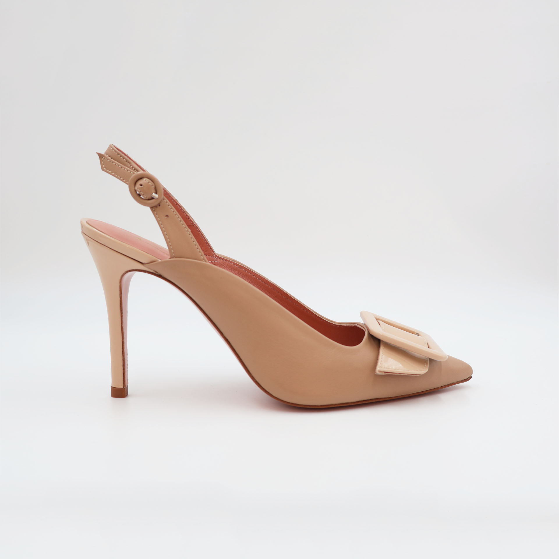 Stiletto in dusty nude nappa leather, pointed toe and 10 cm heel.